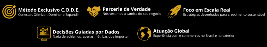 Nossa missão é clara: transformar e-commerces em operações estruturadas e lucrativas, seja no Brasil ou no exterior.